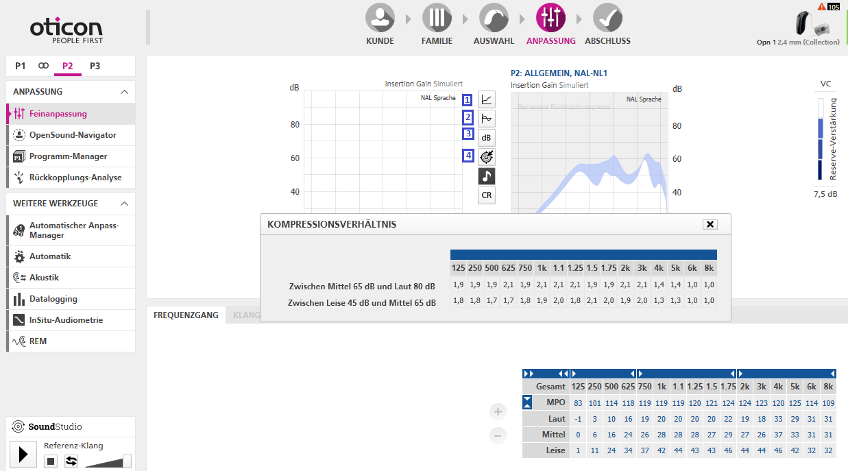 Im ersten Schritt habe ich einen neuen Kunden angelegt und dann mein Audiogramm einschl.