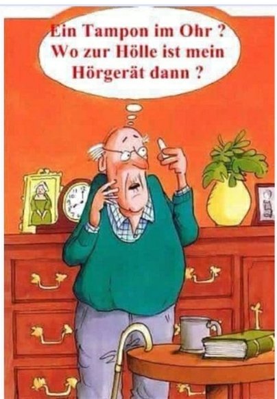 Tinnitus ist schon sehr belastend!Pedigr - ohr hat geschrieben: ↑18. Okt 2023, 01:53 Kann vor Tinnitus nicht schlafen. Und vor Durchdrehen, weil ich ertaubt bin, und mir nicht mal ein Hörgerät genehmigt wird? Ist das rechtens? Daher danke für die Auflockerung, auch wenn ich jetzt kein Hörgerät mit Duschgel, Parfum oder Pralinen verwechseln könnte.