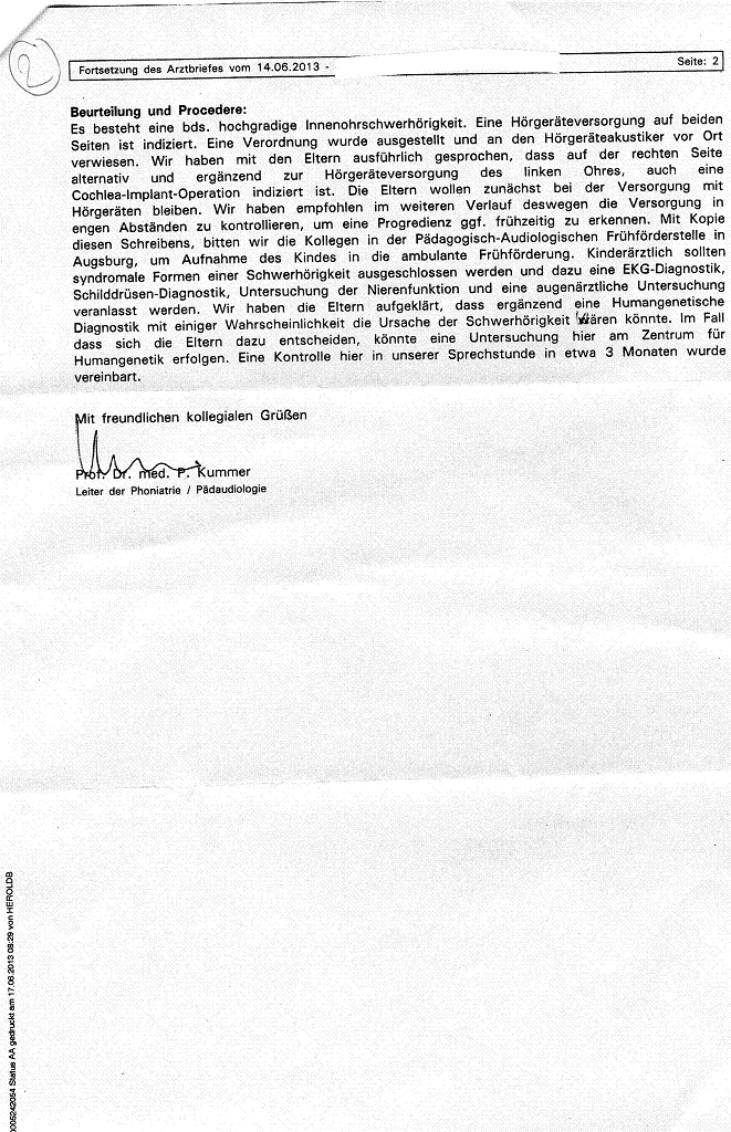 "Es besteht eine bds. hochgradige Innenohrschwerhörigkeit."
