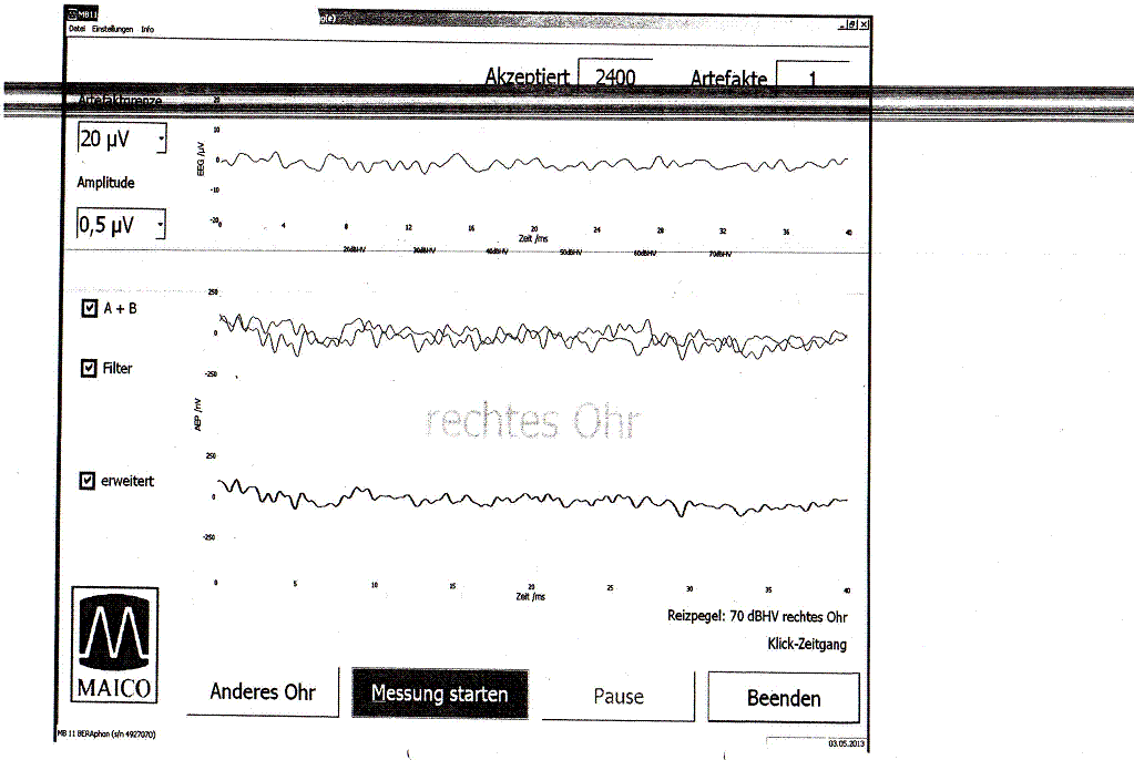 Zuvor wurde nur der OAE in der Geburtsklinik gemacht und dann noch weitere Male bei einem HNO Arzt.