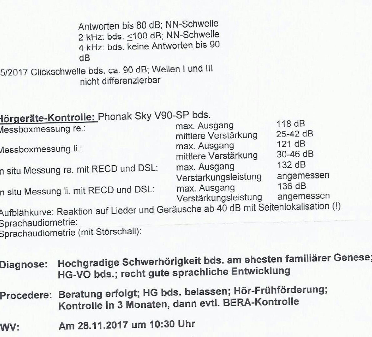 Ebenfalls vermisse ich die Resultate einer Verhaltensaudiometrie.