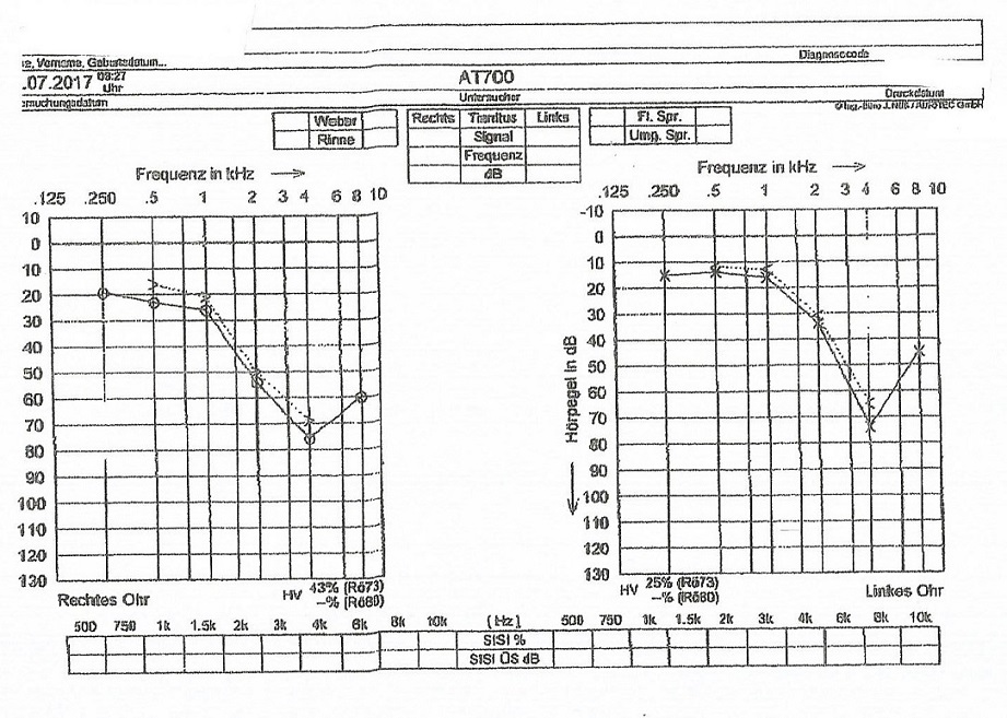 Anbei mal das Audiogramm vom HNO. Vielleicht kann mir mal richtig einer was dazu sagen.