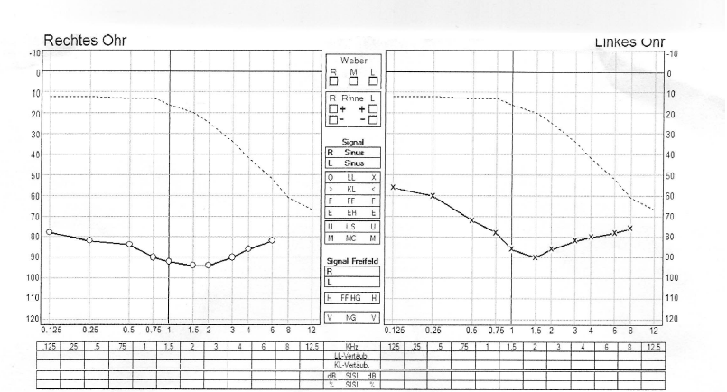 und noch eine Frage an die HGA hier im Forum, ist bei meinem Audiogramm noch eine Versorgung mit einem Ex-Höhrer möglich, die Reserven z.B. beim Nadia B R, UP wären ja nicht mehr hoch?