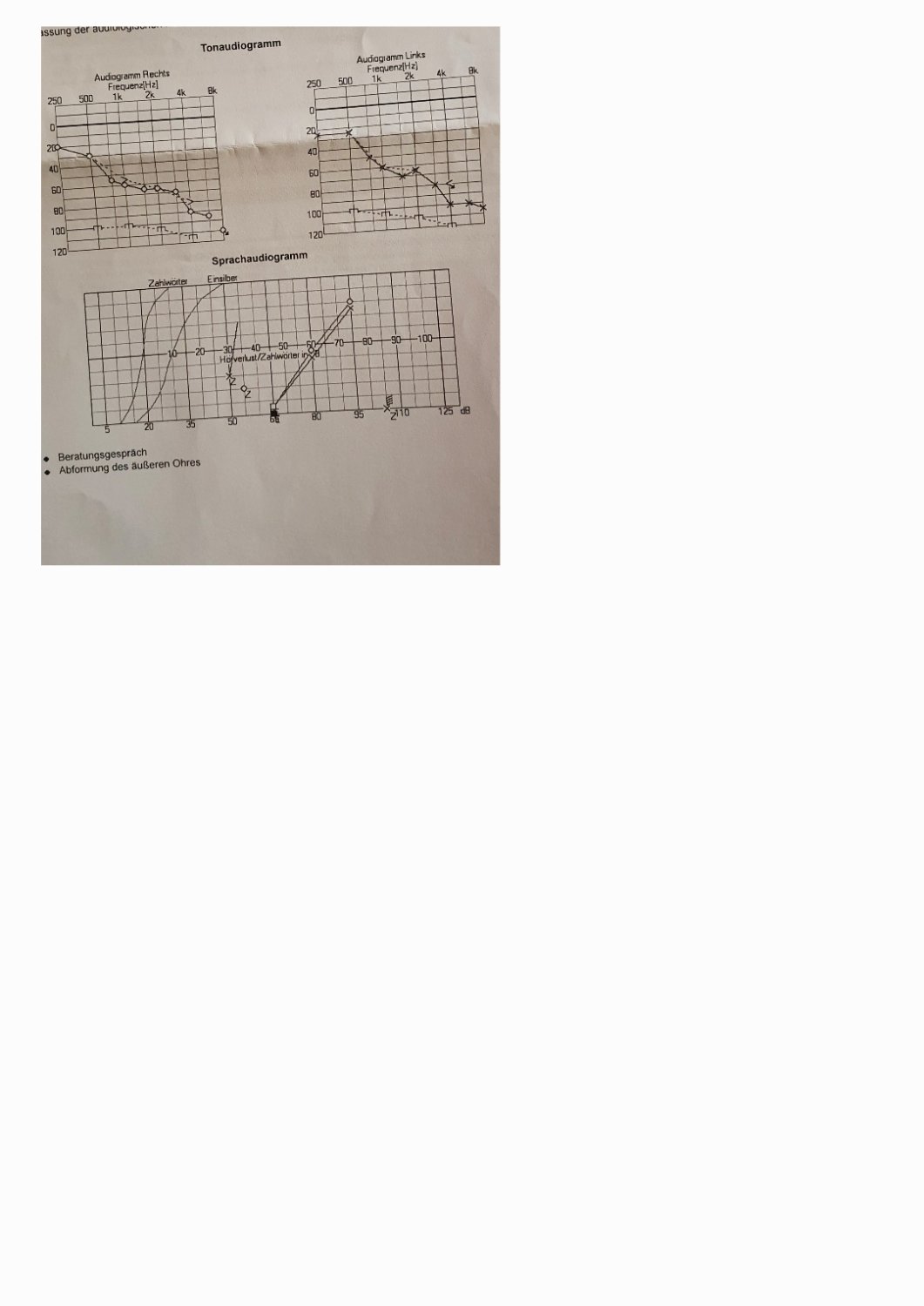 Da das Sprachaudiogramm nicht vollständig ist für die GdB Berechnung, kann der GdB zwischen 15 und 30 angesetzt werden. GdB 30 aber im bestmöglichen Fall nur.