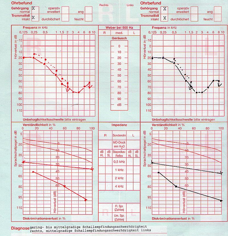 Das aktuelle Audiogramm ist vom 13.01.2010 und ich liste es mal auf:
