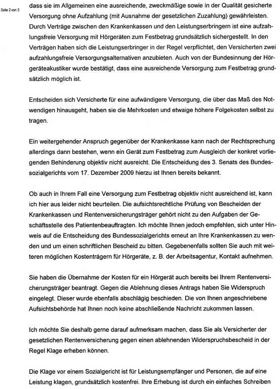 Hast du in deinem Antrag auf die Rückkopplungsunterdrückung abgestellt? Weil das war ja der Knackpunkt bei dem BSG-Urteil, so weit ich das interpretieren konnte -- dass die einfachen Geräte über eine sehr viel schlechtere Rückkopplungunterdrückung verfügen und dies vom Hörgeräteträger nicht hingenommen werden muss, angesichts der hohen Verstärkungsfaktoren und damit der natürlichen Pfeifneigung.