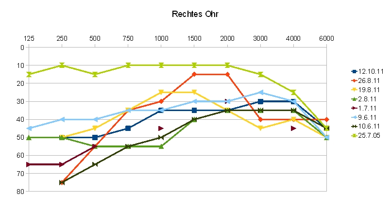 Allerdings hatte ich ca. 2007 einen "Hörsturz" auf dem linken Ohr auf ca. ca. 20%, der sich nicht mehr erholte. Deshalb ging ich zu einem neuen HNO nachdem der alte nur kommentierte: "Sie waren zu lange in der Disko".