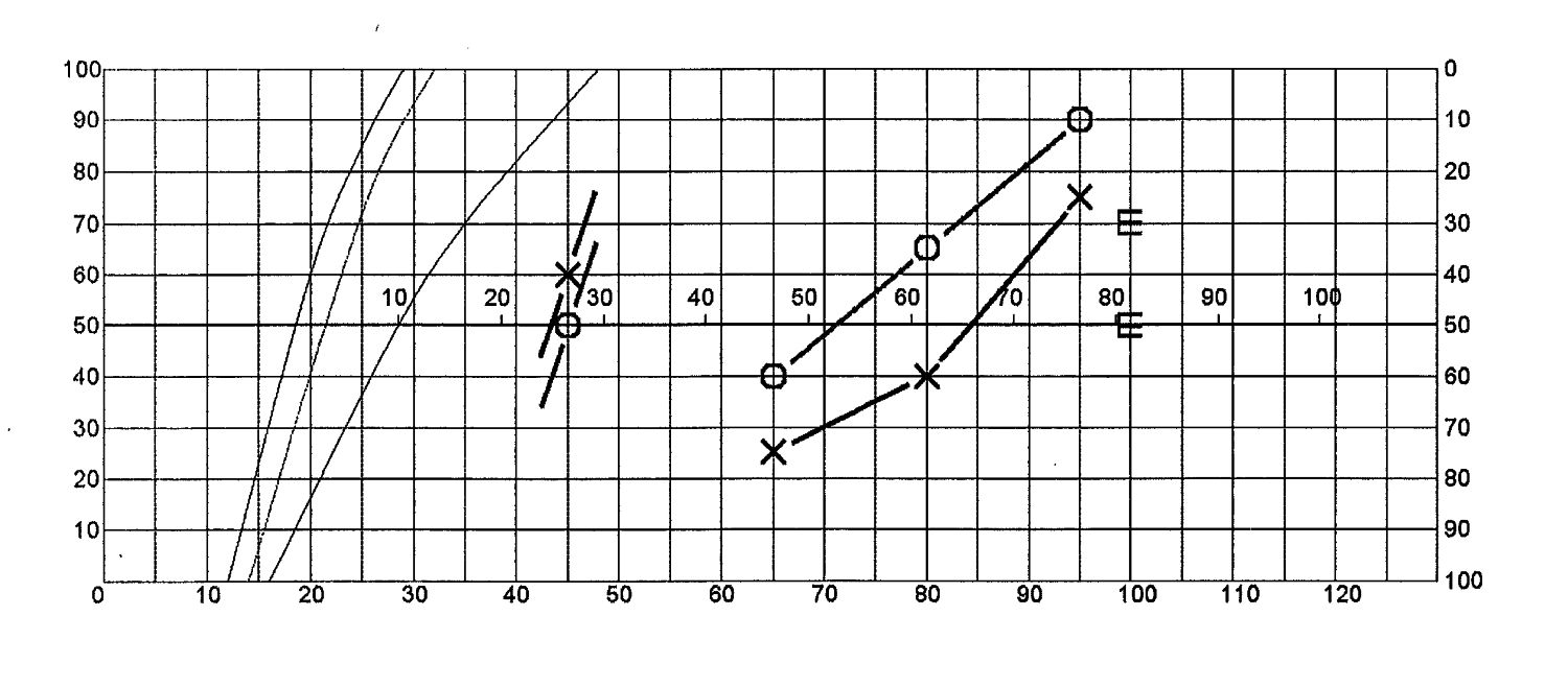 Ich habe die Werte dann in euren GdB-Rechner eingegeben. Heraus kam 75% Hörverlust auf dem rechten Ohr, 76 % auf dem Linken.