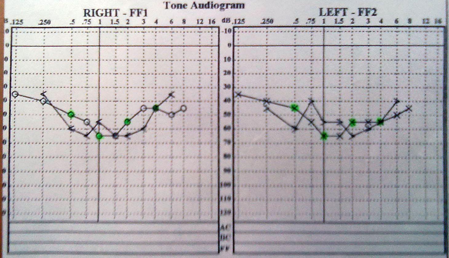 Da ich bei meinem momentanen HNO noch keinen Sprachtest gemacht habe, nehme ich an, dass dieses Audiogramm als Grundlage genommen wurde.