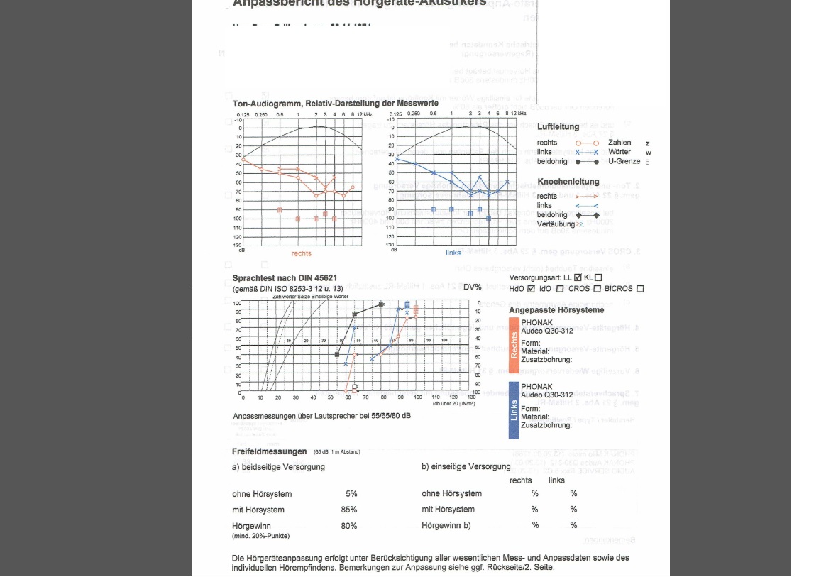 leider kann ich die Audiogramme nicht wirklich lesen; sie sind mir zu klein. Zudem fehlen mir Angaben, insbesondere das Zahlenverständnis etc.