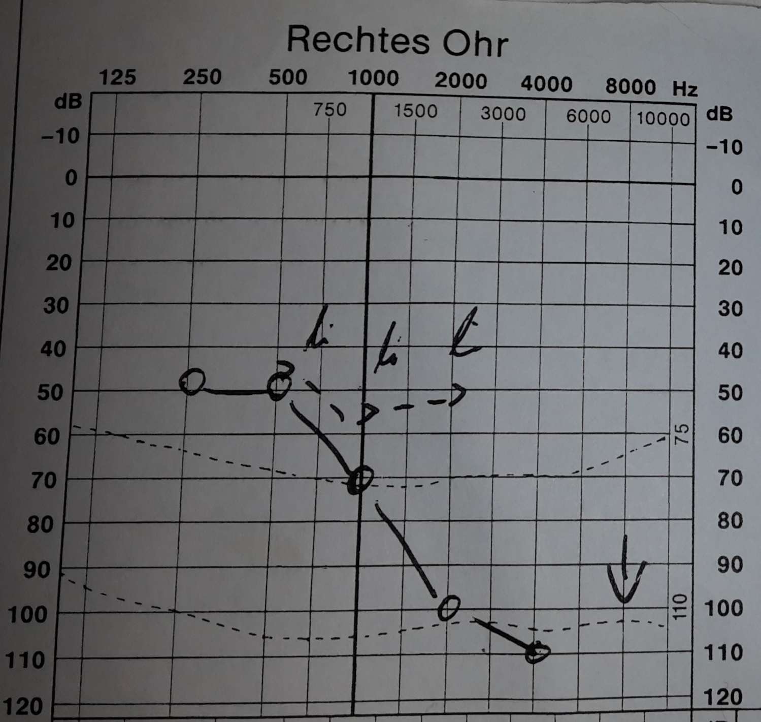 im Feb 2013 diagnostizieret der HNOI mir rechts eine mittelgradige schwerhörigkeit, riet mir zu einem hörgerät. Da ich (damals) von falscher eitelkeit geleitet war, enscheid ich mich nach ausgibigen test für