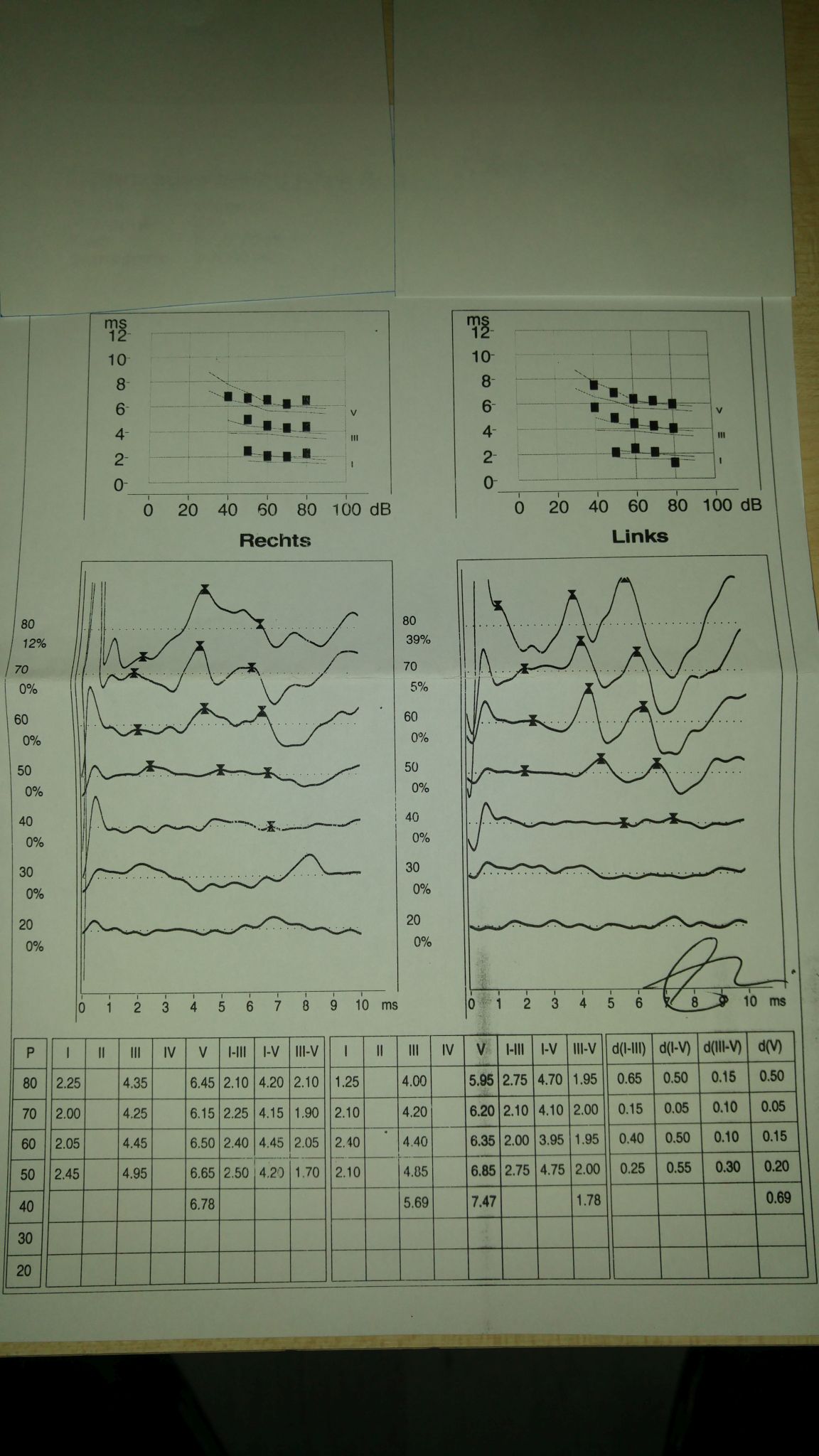 Laut Potentialkurven auf dem Bild ganz rechts könnte man die Hörschwellen beidseits bei 30 dB vermuten. Und wenn ich Deine Schilderungen bezüglich der BERA-Ergebnisse zu verschiedenen Zeitpunkten in Betracht ziehe, würde ich folgende Aussage als nicht unbedingt sehr glaubwürdig ansehen: