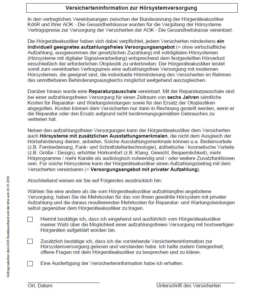 Steht doch alles in der "Versicherteninformation". (siehe Anhang)Gewichtl hat geschrieben: AUCH im Hörgerätebereich funktioniert das System doch nur noch deshalb, weil die Mehrheit der Betroffenen nicht merkt, WAS da eigentlich zwischen den Parteien vereinbart worden ist.