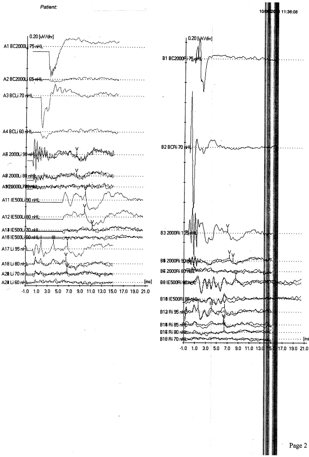 Bei den Tests mit dem BERAphon erkenne ich bei 70 dB nicht viel (ob dies eine Welle V bei etwa 7 ms ist, kann ich nicht beurteilen); sie stehen jedenfalls nicht im Widerspruch zu den anderen Ergebnissen.