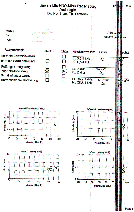 Du kannst (wenn Du möchtest), sämtliche Unterlagen (inklusive Potential-Kurven der BERA etc.) bei der Klinik anfordern und anonymisiert (Namen etc. abdecken) hier einstellen. So kann ich mir das anschauen und dann meinen Senf dazu abgeben (Du brauchst die Details auch gar nicht zu verstehen, sondern vor allem die Schlussfolgerungen).blubb18 hat geschrieben:mir sagt die Hälfte ja gar nichts