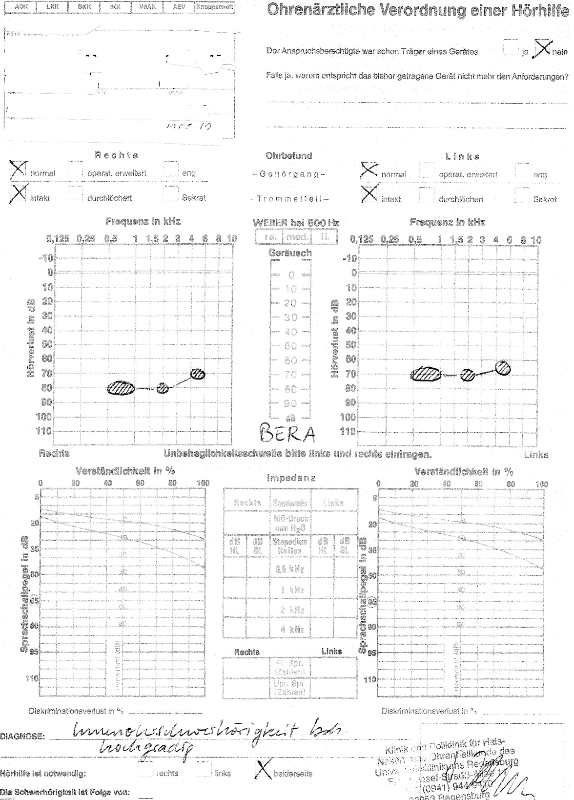 "Es besteht eine bds. hochgradige Innenohrschwerhörigkeit."