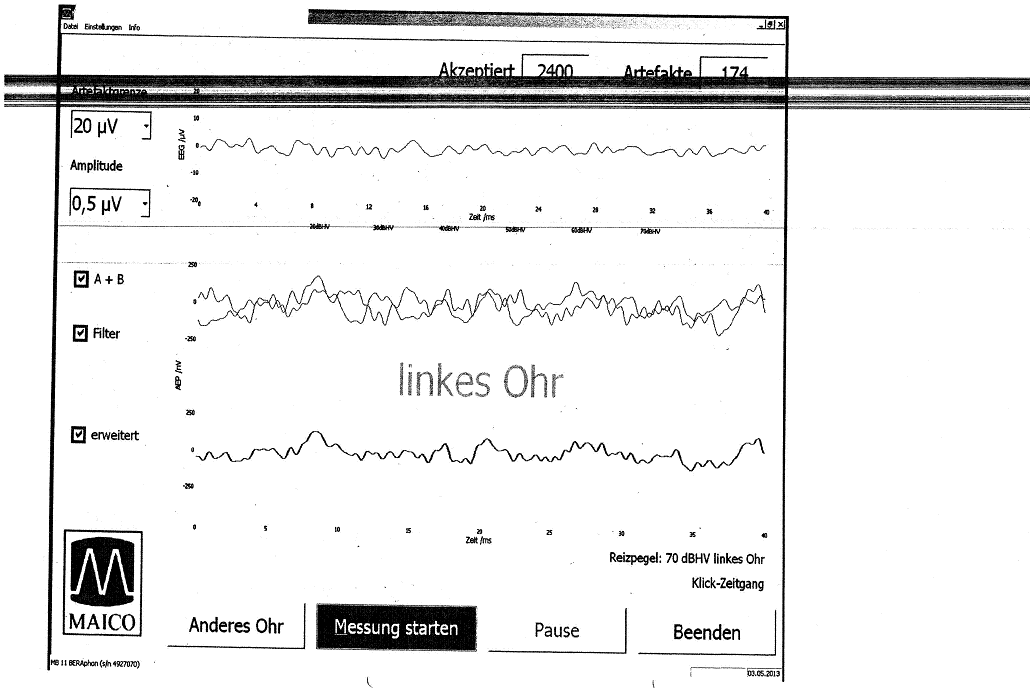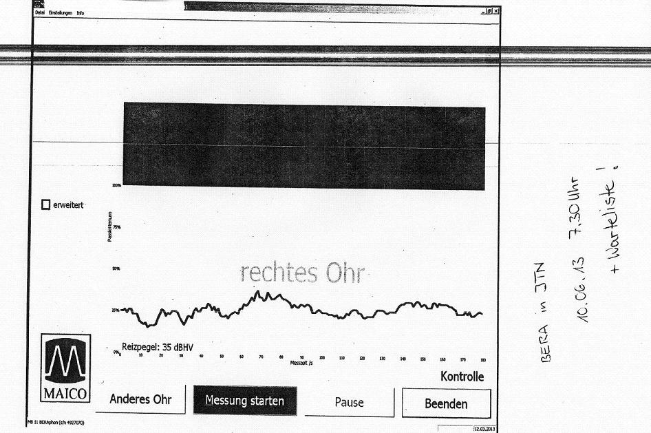 Zuvor wurde nur der OAE in der Geburtsklinik gemacht und dann noch weitere Male bei einem HNO Arzt.
