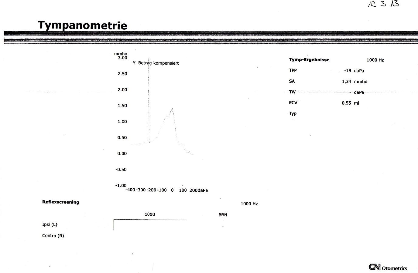 - sind die Ergebnisse der Tympanometrie unauffällig?