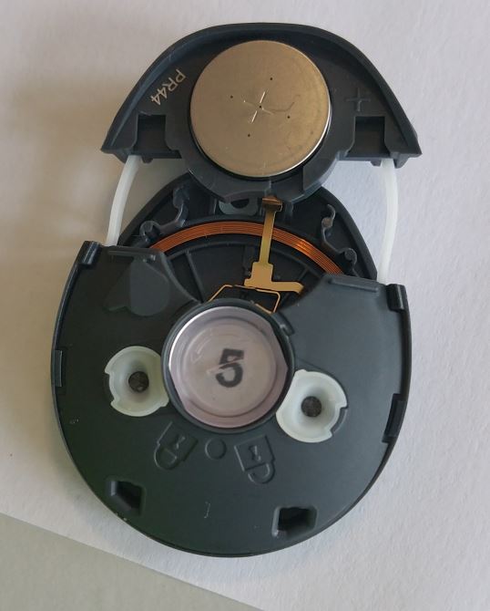 Ist immer eine Plastiköse mit einem Stück dünner Nylonschnur und mit unterschiedlichen Haarklammern. Auf dem Foto, dies ist die kleinste Haarklammer die es gibt. Um diese Öse in den Soundprozessor einzusetzen muss man lediglich die Batterie, sowie den Coverdeckel entfernen. Ist ganz easy.