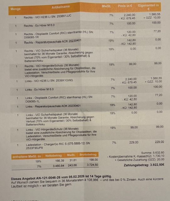 Das Probetragen ist schon sehr anstrengend, sehr viele Nebengeräusche, man hört praktisch das Gras wachsen…, schnarren und knistern, was die Sprache dann überlagert. Auch wenn ich selber spreche höre ich ein scharren und knistern. Die Einstellungen wurde bereits durch den