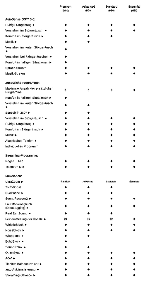 Absolut! Apropos Preis: Im Anhang habe ich ein Screenshot von den Leistungsunterschieden zwischen 90,70,50 und 30-Variante. Mich wundert, dass du nur die 50er-Variante zum Testen bekommen hast, denn dem fehlt "WindBlock" und vor allem "SoundRelax". Letztere ist zumindest für mich sehr wichtig, um plötzliche Peeks zu glätten. Andernfalls wäre es für mich schmerzhaft. Ich habe ja V90 getestet und festgestellt, dass die Features, die V90 mehr hat als V70 (bzw. B70), ich nicht brauche. Die Features sind dieselben wie jetzt bei Audeo-M (bis auf das direkte Streamen, das aber in jeder Leistungsklasse enthalten ist).