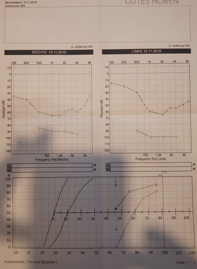 Ich wurde gerade darauf aufmerksam gemacht, dass das Sprachaudiogramm, welches ich als Sprachaudiogramm für das linke Ohr interpretiert habe, ggf. das Sprachaudiogramm mit Hörgeräten ist.