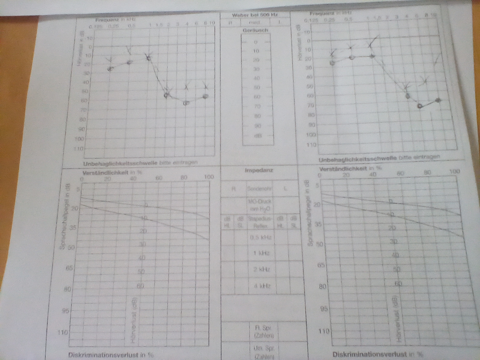 Der Hörverlust rechts ist: 94 % An Taubheit grenzende Schwerhörigkeit