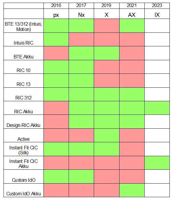 Signia ist einer von den Unberechenbaren. Siehe angehängtes Bild über die veröffentlichten Bauformen je Chipplattform. :D