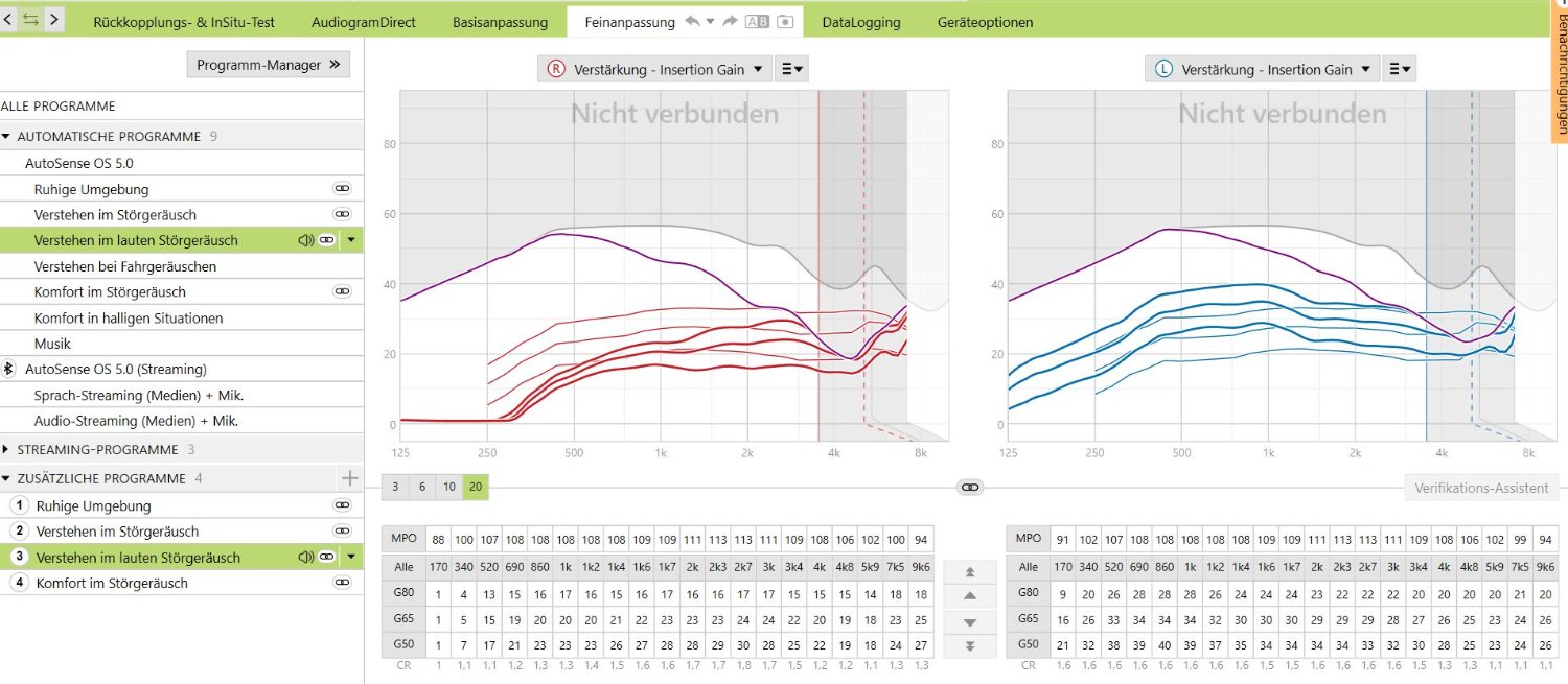 Wenn ich GD 50 reduziere, höre ich aber vermutlich schlechter im normalen Umfeld, wo ich früher bei Oticon immer Probleme hatte? Demnach vermute ich mal, ich sollte die Einstellung nur auf dem Prg. "Verstehen im lauten Störgeräusch" vornehmen oder doch für alle Prg.?