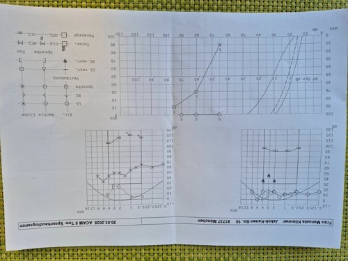 ich muss meine Antwort etwas aufteilen, denn irgendwie fliege ich immer raus. Rechts sieht völlig ok aus. Links würde ich dich erstmal zur medizinischen Vorgeschichte fragen Operationen am Ohr? Otosklerose usw. das ergibt für mich kein eindeutiges Bild. Vertäubt wurde die Sprachaudiometrie sieht ok aus Tonaudiometrie kann ich aufgrund der Bildqualität die Vertäubung nicht hundertprozentig erkennen.