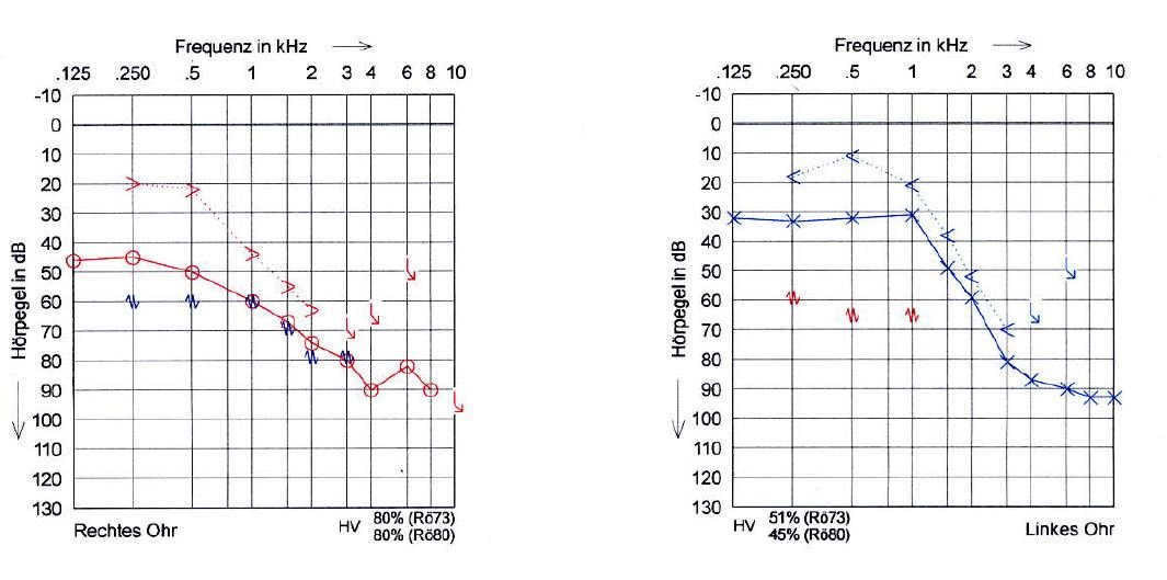 Ah, Danke! Ich gehe bei dem Audiogramm davon aus, dass man mit Hörgeräten locker 80% und mehr erreichen kann.