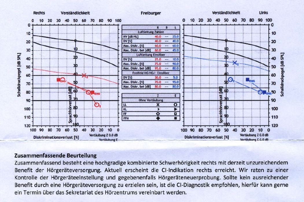 Ich weiß nicht, wo die CI-Indikation anfängt, aber nach meiner Einschätzung hören die Ohren noch mehr als gut genug, um mit einem CI versorgt werden zu müssen.