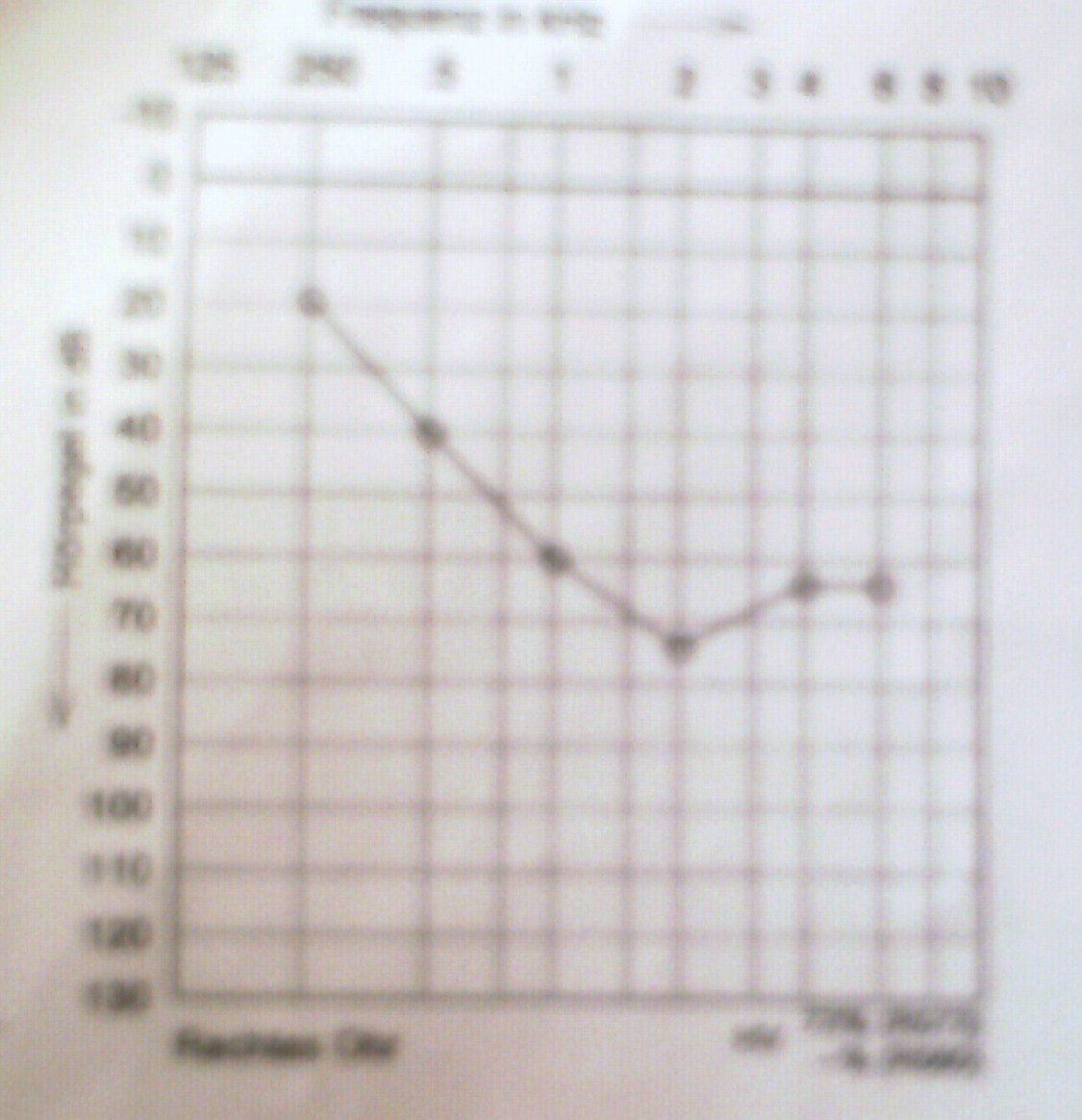 Na ja, alles in einem eine lange, komplizierte Geschichte. Es verärgert mich sehr, daß ich den Ärzten zu lange vertraut habe und die Zügel nicht vorher selber in die Hand nahm, ich ging jedoch von der Kompetenz der Ärzte, Logopäden e.t.c. aus... Es lässt sich leider nicht mehr ändern. Ich würde die Schwerhörigkeit meines Sohnes mal genauer erklärt haben, traue mich nicht dem Arzt, im Alltagsstreß (es ist dort immer sehr hektisch) zu sagen, daß ich seine fachbegriffe schwer verstehe. Leider habe ich keinen Scanner, aber ich habe versucht, das Audiogramm der ersten Untersuchung nach Verordnung, zu fotographieren. Ich hoffe, man kann es lesen und hoffe auch, von der Erfahrung manch eines hier zu profitieren... Ich wüßte einfach mal gerne, ob die Schwerhörigkeit wirklich so hochgradig ist, wie der Arzt sagt. Ich muß zugeben, ich verstehe diese ganzen Audiogramme nur sehr schwer und kenne mich mit dB und kHz nicht sooo... gut aus (noch nicht)