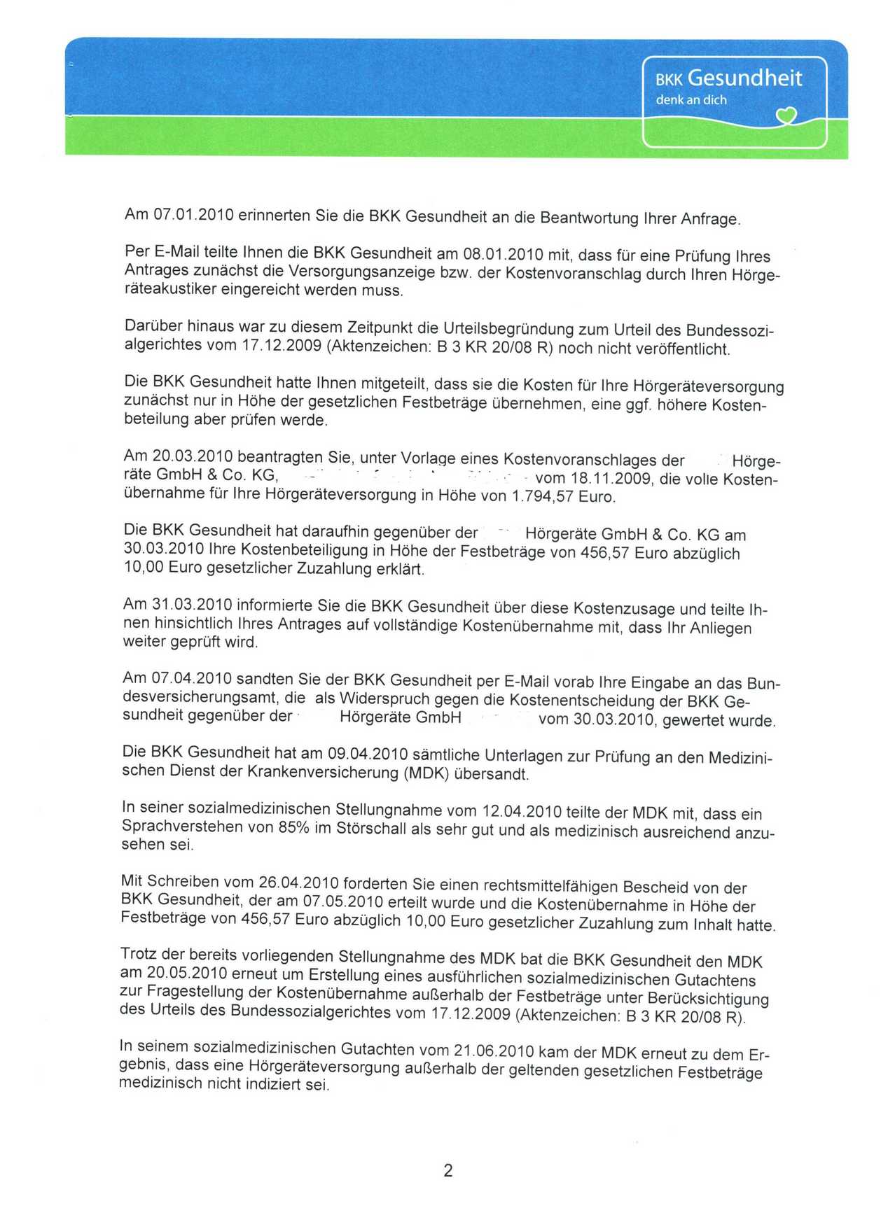 Mein erster Antrag auf Kostenübernahme wurde natürlich abgelehnt, daraufhin habe ich einen zweiten Brief eingesendet, der meine Situation deutlich klarlegt und mit Bezug auf das Urteil vom 17.12.2009. Jetzt möchte meine Krankenkasse (
