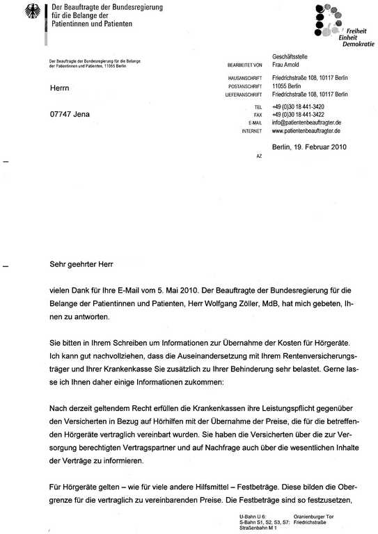 So, es gibt bei unserer völlig inkompetenten Regierung ja auch noch einen so genannten Patientenbeauftragten. Genau dem habe ich mal geschrieben und den gesammten Sachverhalt geschildert. Gestern kam Antwort, seht selbst.