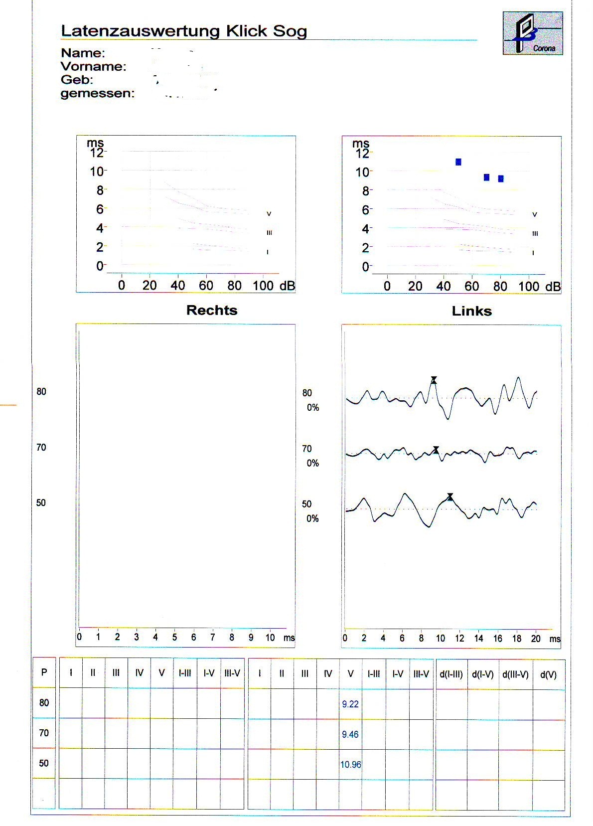 Allerdings bringt es jetzt wenig die Kurven einer Bera ins Forum zu stellen, die schriftliche Diagnose also bei einer Klick-Bera die gemessene Hörschwelle reicht.