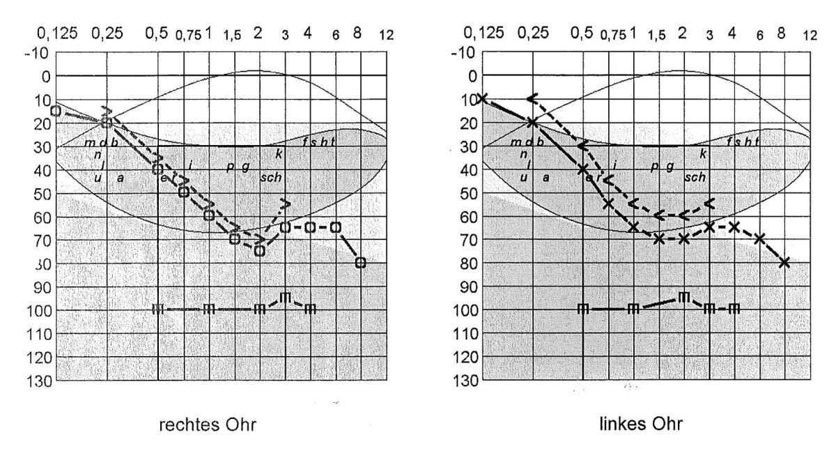 Ich habe dann zum ersten Mal meine Audiogramme in die Hand genommen und versucht zu verstehen was die Kurven eigentlich bedeuten.