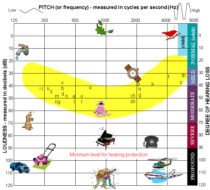 Diese Eintragung der Konsonanten in die "Sprachbanane" (man kann auf schlau auch "Fantsches Sprachfeld" sagen) ist oft rein willkürlich. Je nach Sprache und Sprecher sind die Frequenz- und Pegelverteilungen der Phoneme unterschiedlich. Ein deutsches "t" oder "p" ist zum Beispiel hochfrequenter und lauter als ein spanisches.