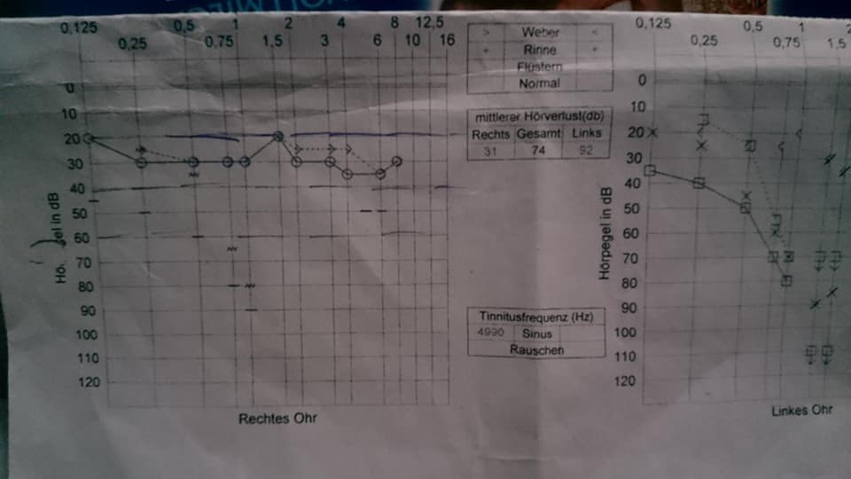 Fast alle Punkte sind im Akustiker Audiogramm besser, bis auf den einen der so schlecht ist...