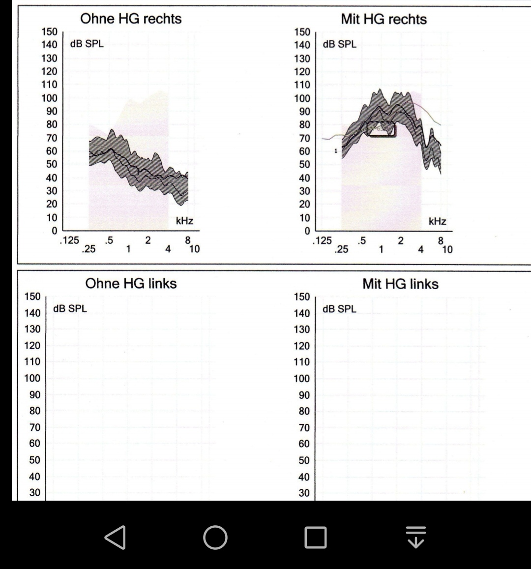 vielleicht kannst Du mir nur sagen ob das Hörgerät rechts so schön ziemlich optimal eingestellt ist. Die Höhen sind bewusst unter der Hörschwelle weil ich es sonst nicht gut vertrage.