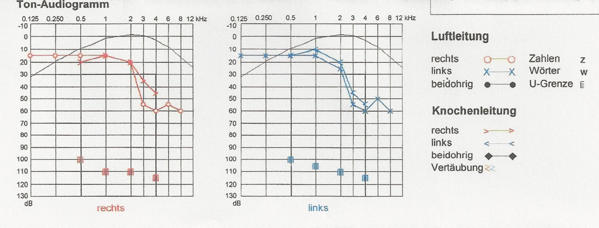 Wir haben einiges gemeinsam... Habe mich heute auch angemeldet, habe ein ähnliches Audiogramm mit dem kleinen Unterschied, dass mir Rechts bei 4k 75 db fehlen Links es z.B. bei 8k 90 db sind.