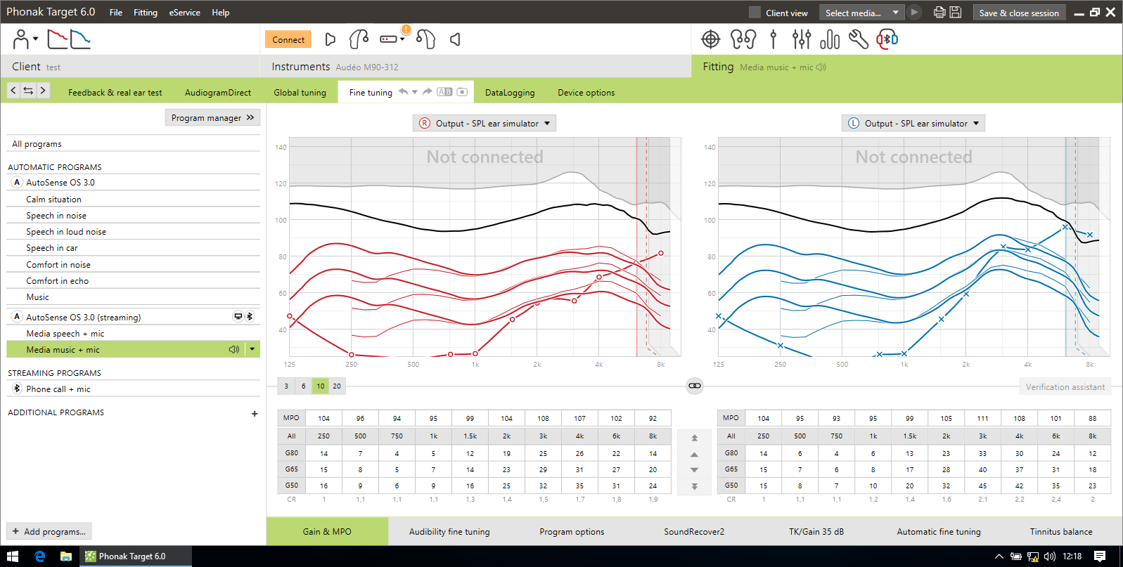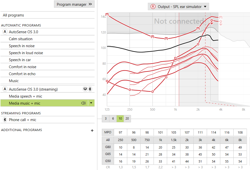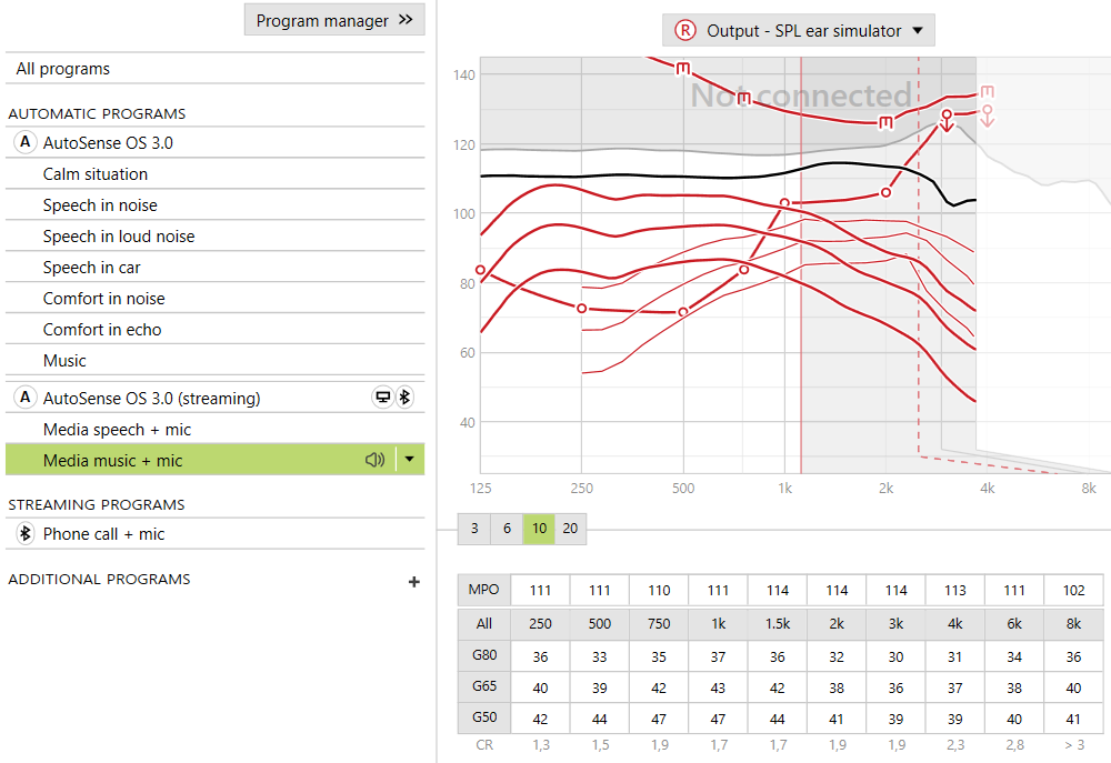 Ich habe das gerade in Target kurz ausprobiert, ohne meine Hörgeräte anzuschließen. Musikrogramm als Badewannenkurven programmiert; die anderen Programme wie vorher gelassen.