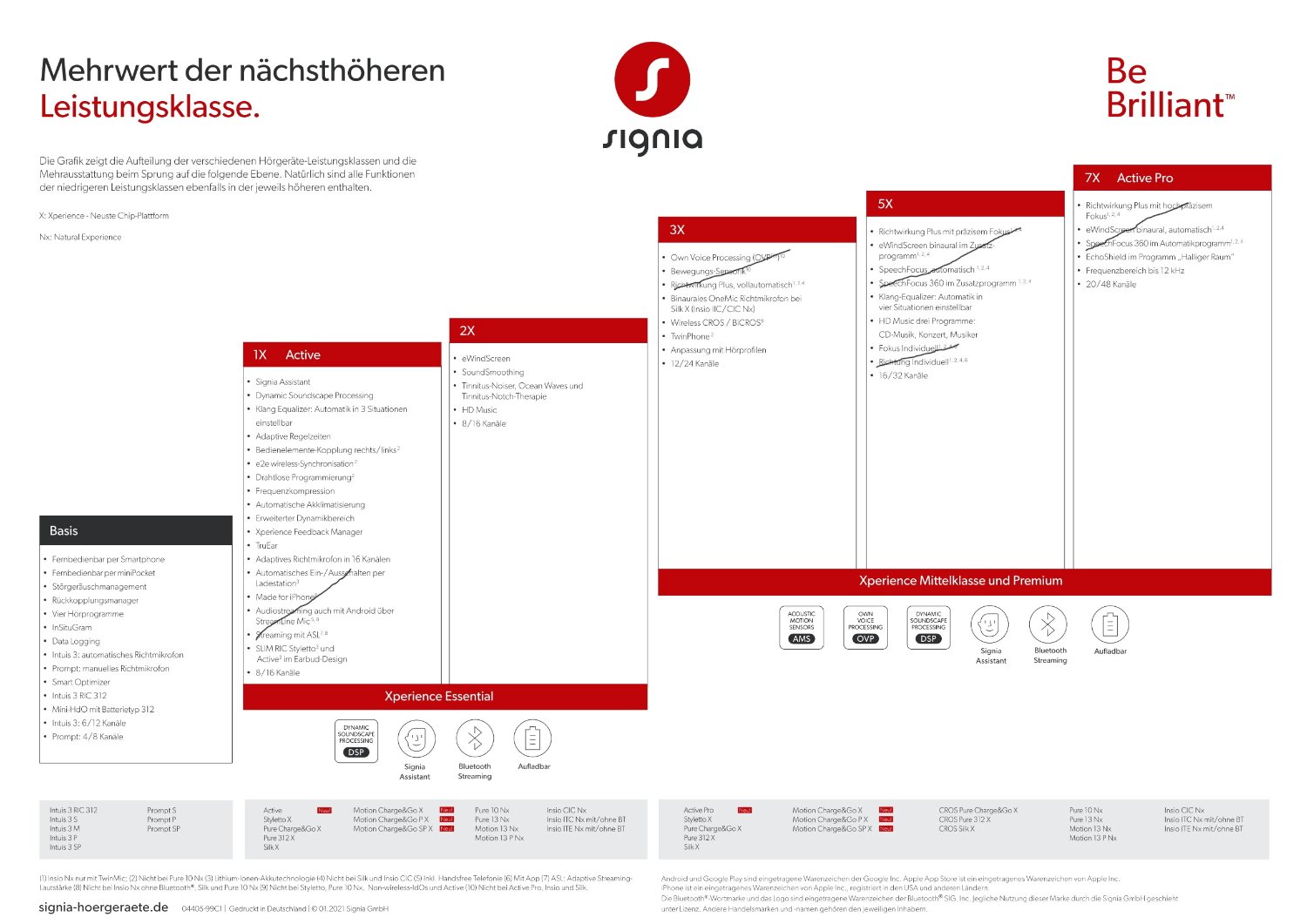 Ich habe jetzt auch ein paar mehr Infos zu Signia Active und Active Pro. Im Active ist die 1X-Technik drin, preislich liegt es etwas über den "herkömmlichen" 1X-Geräten. Das Active Pro hat die 7X-Technik (also volles Brett :D ) an Bord, liegt aber preislich irgendwo zwischen 3X und 5X.