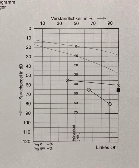 Ja, ich werde auf jeden Fall einen Antrag stellen. Kannst Du mir vielleicht erklären, wie sich der Hörverlust auf dem linken Ohr zusammensetzt? Welches Audiogramm hast Du dafür zugrunde gelegt? Meine Verwandtschaft sagt, dass ich seit Ende letzten Jahres noch weniger verstehe und deswegen ein neues Audiogramm machen sollte. Ich überlegte nun schon heute Nacht, zu wem ich hingehen werde. So langsam weiß ich nicht mehr so recht weiter.
