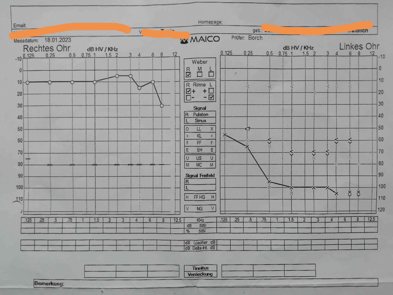Bisher habe ich noch keine Erstversorgung, da ich wie erwähnt noch den nächsten Hörtest abwarten soll. Der letzte Hörtest war in der Uniklinik in Bochum und laut der Ärztin dort sollte, wenn es so bleibt ein Ci gemacht werden. Mein HNO meinte, ein Hörgerät wäre ausreichend. Daher bin ich sowieso schon verunsichert. Der Hörtest am 18. Januar ergab, dass ich im mittelfrequenten Bereich ab 100db etwas höre und am 14. Februar ab 80db.