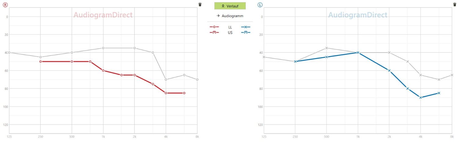 ich bin 55 Jahre alt und trage seit ca. 10 Jahren Hörgeräte. Grund der Schwerhörigkeit ist eine vererbte Otosklerose. Ich hatte schon zwei Stapes-OPs im Mittelohr. Das hören wir langsam, aber stetig immer schlechter. Mit Hörgeräte höre ich vieles Verzerrt oder ab ca. 2 kHz gar nicht mehr. Musikhören wird immer schlechter, insbesondere klassische Musik. Alles klingt sehr „einfältig“ oder verzerrt. Anbei mal mein Audiogramm. Was ist eure Meinung dazu, würde eventuell ein