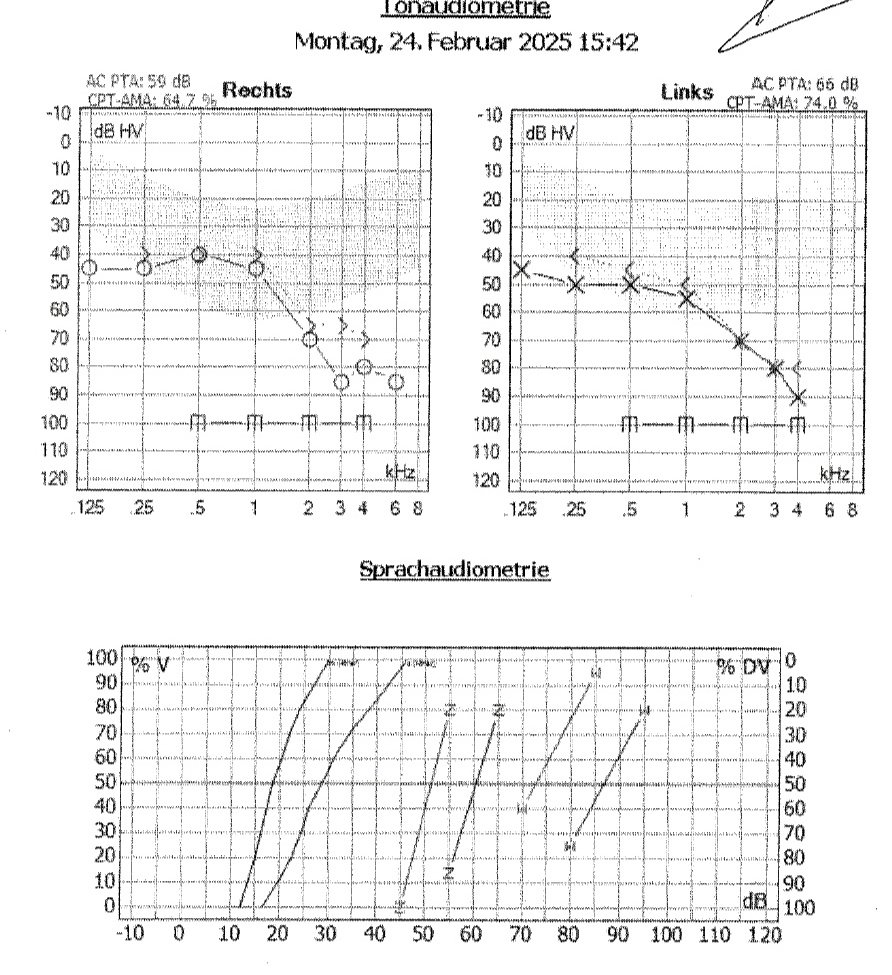 Wow, Hut ab, dass du bei dem Tonaudiogramm noch so ein gutes Sprachverstehen in der Kabine hinbekommen hast.
