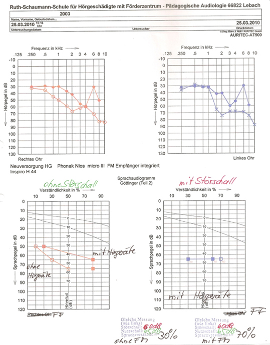das Sprachverstehen scheint sich verschlechtert zu haben, ohne Hörgeräte. Vielleicht hat aber Deine Tochter bei dem betreffenden Test etwas weniger gut mitgemacht.