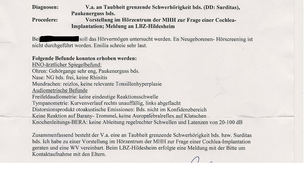Und versuche, dir erst Gedanken zu machen, wenn klar ist, wie gut deine Tochter wirklich hört (so schwer das ist).